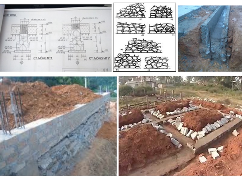 Có thể dùng móng gạch xây, đá xây, bê tông đá hộc.